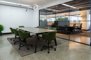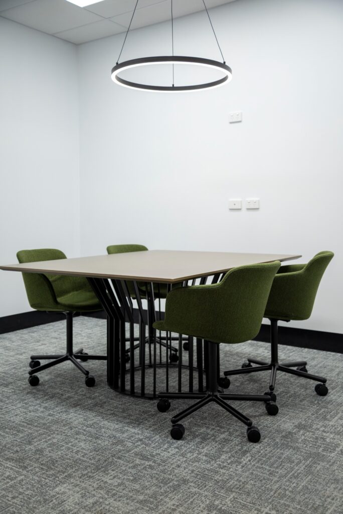 This workplace furniture fit-out in Melbourne was planned around headcount, circulation, and future flexibility. Open plan workstations support efficient space use, while meeting and breakout zones provide quieter collaboration areas.