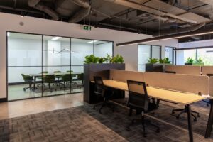 The fit-out included office workstations, meeting and breakout settings, and support furniture selected for commercial durability and efficient cable management. Delivery was staged to align with the building programme and minimise disruption.