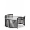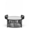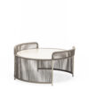 Anthracite or sand powder-coated steel frame for outdoor use. HPL top. Handwoven with marine rope.
