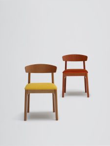 A new form, the backrest of the Anes supports the user and presents a strong stature. The timber frame is accented by supports and calls to tradition.