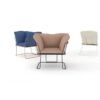 Once the frame is separated from the cushions (removable with a simple gesture), the structure can be divided into two parts, decreasing its volume and significantly reducing packaging: this design solution makes the collection easy to transport and stack. Galvanised, painted steel rod structure.