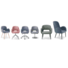 Shells are available fully upholstered in house fabrics or soft leathers, COM or COL.