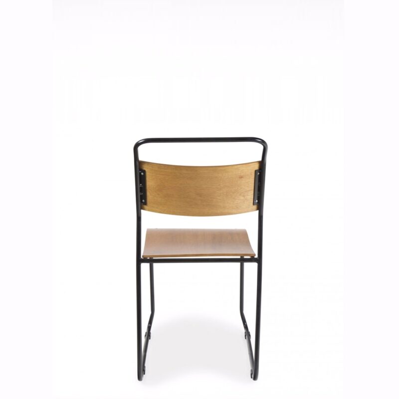 Rustic steel sledge base, non-slip feet pads, plywood timber seat and back.