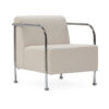 Seat and back hang from a metal structure that surrounds the pieces from the back and makes moving them easy.