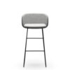Upholstered seat in fabric, sled base in black painted metal.