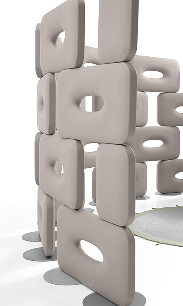 It could create an endless room divider. Thanks to individual modules with soft, essential shapes, you can create linear or sinuous separations that strongly personalize the space in which they are placed. The modularity of these elements allows for infinite combinations, adapting perfectly to any design and configuration needs.