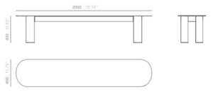 Aluminum bench available in two sizes. The seating area features an ash veneer and it is available in a natural or lacquered finish.