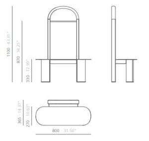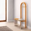 A piece of furniture designed to decorate areas where we undress and surrender to the warmth of our “loungewear”. The structure is manufactured in aluminum and the arch in solid ash with a natural or lacquered finish.