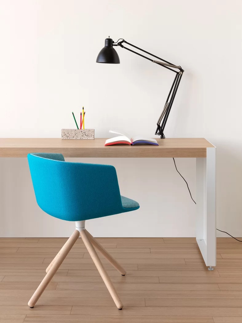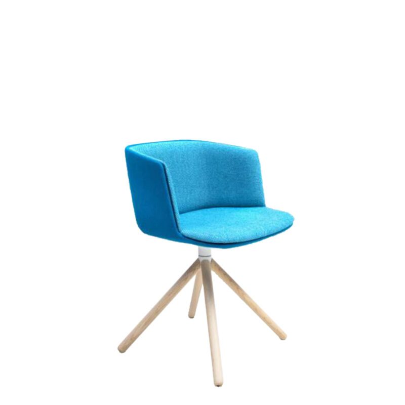 Sturdy yet light, the CUT swivel chair incorporates the informal appeal of its Baydur® structure with charming wood legs, adding a classic touch to a very contemporary product, available in many variations.