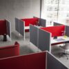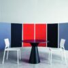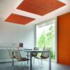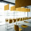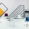 The Diamante acoustic system is characterized by a modular design and a large size of the sound-absorbing panels: they can be located on walls, ceilings, floor screens or around desks. Diamante panels ensure an acoustic improvement and more privacy of the workplace, allowing a separation of spaces.