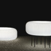 ELLY embodies the evocative forms of luminous jellyfish: threadlike metal legs like tentacles form the base of sinuous, undulating luminous bodies that evoke the elegance of the marine creature. These polyethylene lamps capture the ethereal and enchanting essence of these marine creatures, bringing their grace and beauty to both private and contract spaces.