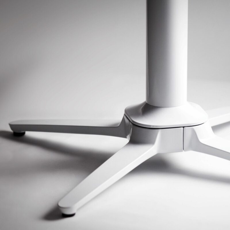 Self-stabilising table base – Norock’s award-winning bases use a simple mechanical system with four pivoting legs that are interconnected in such a way that they must reach an average weight loading on all four feet. When a table is placed on an uneven surface the feet will move until all four feet reach a state of equilibrium or more simply, a state of stability.