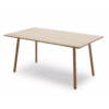 Wide with a medium-length, it doesn’t take up much floor space but still seats many. George Dining Table is intended for six but has room for ten, as the legs are drawn in under the tabletop to make room.