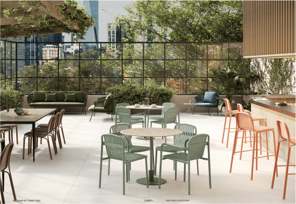 Need help choosing finishes, materials or sizing? Our team can assist with product specification, finish selection and base pairing for hospitality and commercial projects. Zaneti designs commercial furniture for hospitality and public environments, including indoor chairs, tables and outdoor powder-coated furniture options across selected ranges.