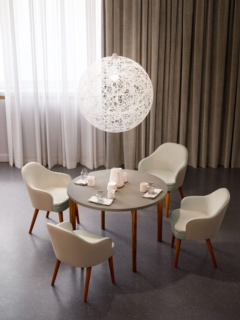 Hedja Chair, a sophisticated and versatile seating option perfect for commercial settings. This chair boasts an elegant curved backrest that provides optimal support and comfort, enveloping the user in its embrace. Crafted with high-quality materials, the Hedja Chair is designed to withstand the demands of commercial use.