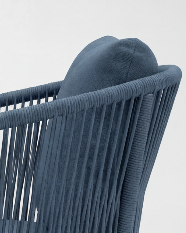 Across the Hera family, the design language stays consistent — lightweight aluminium frames, soft sculptural curves and hand-woven rope backs that add texture without visual weight.