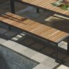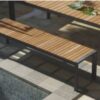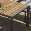 The Hera outdoor table with stylish lines creates a dining atmosphere perfect for any living area. Manufactured with solid wood slats on a die-cast aluminum frame, powder coated charcoal with exquisite craftsmanship.