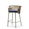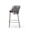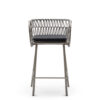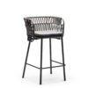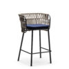 Powder coated steel frame for outdoor use anthracite or sand. Upholstered cushion with fabric for outdoor use. Back woven by hand with marine rope.