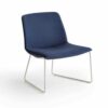 It is a comfortable seating available in various fabrics and with a chromed and white painted still frame.