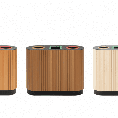 Crafted from premium hardwoods in clear natural or stained finishes, the Linea Arc 3410 pairs architectural elegance with proven durability. The precision-cut lid opens a full 180° for easy access to three internal bins, supporting efficient servicing and separation of waste streams.