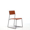 A comfortable chair with essential design, the rod designs the profiles and volumes with graceful symmetry between empty and full spaces. Seat and back are upholstered in regenerated leather, available in various colours.