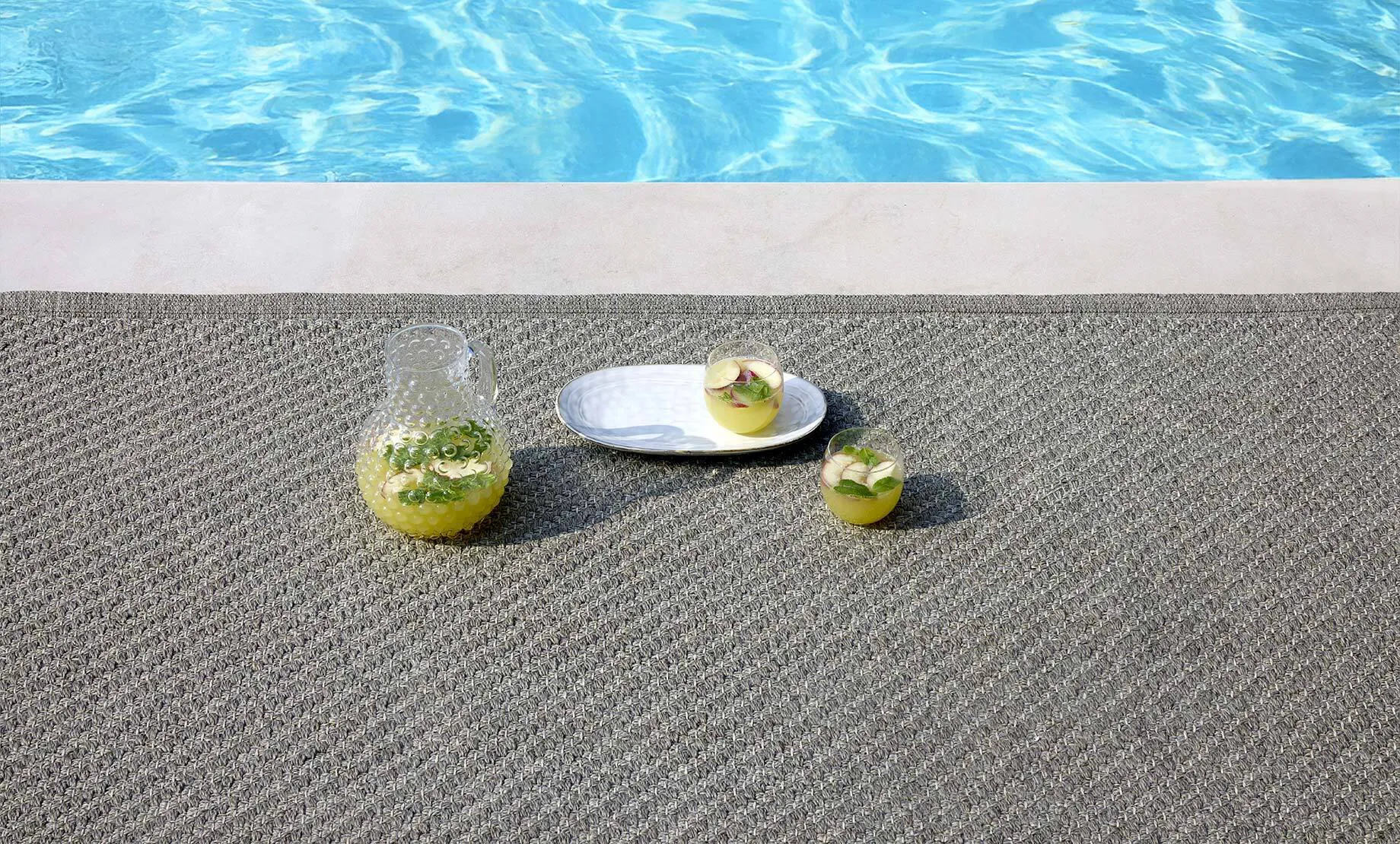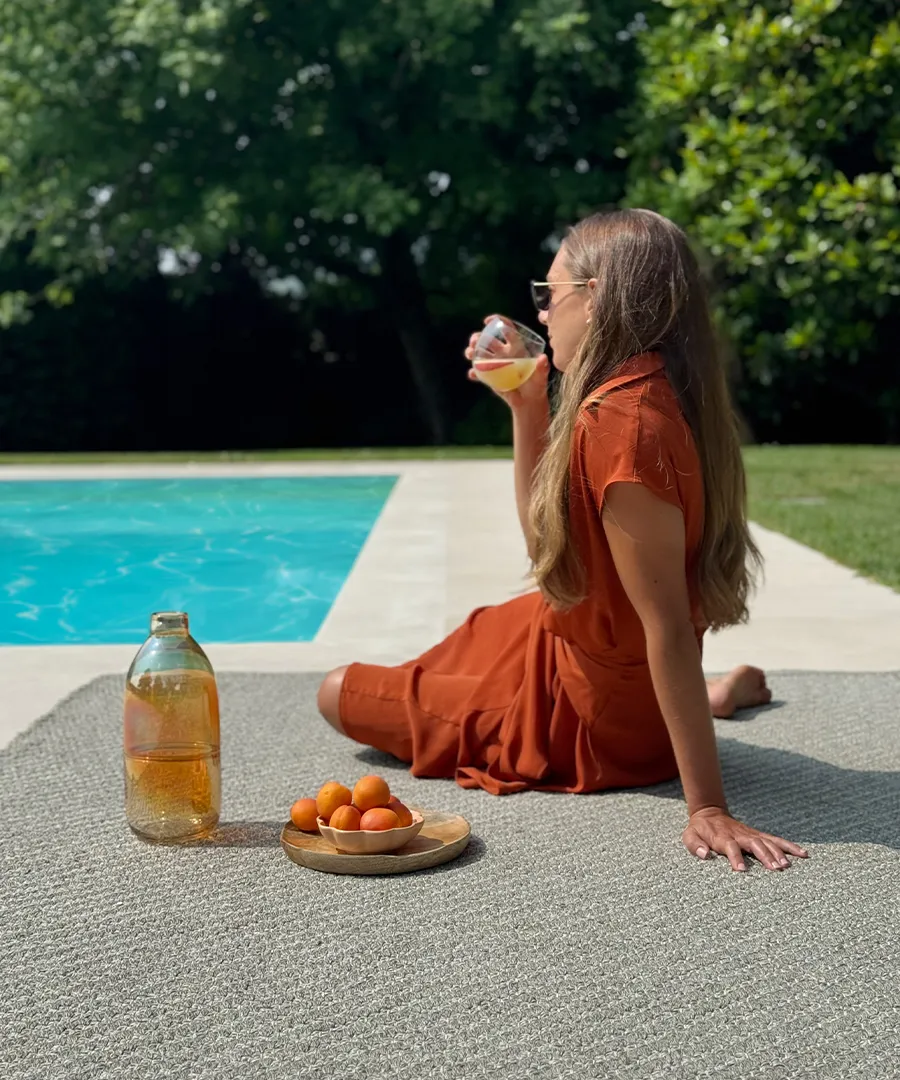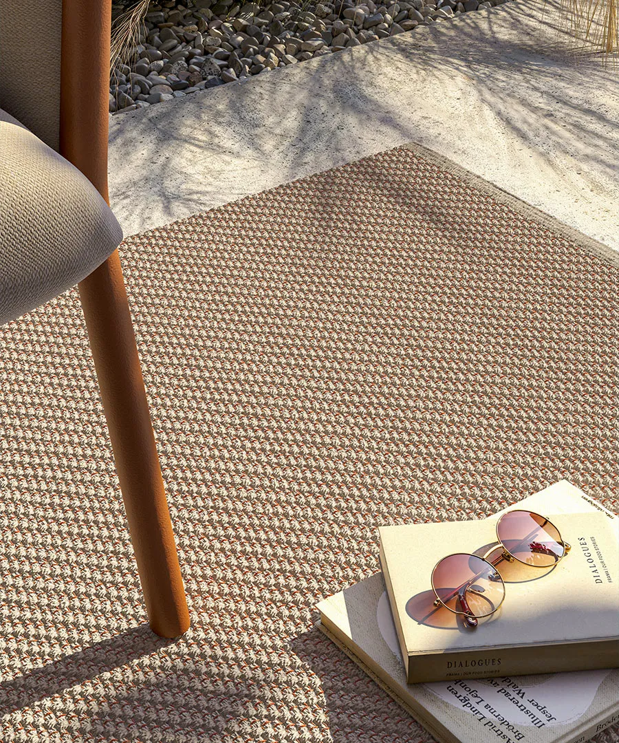Outdoor rugs define zones within hospitality environments while improving comfort and acoustics. In high-traffic commercial settings, materials must withstand UV exposure, moisture and frequent cleaning. Marisco is engineered for these conditions, making it suitable for large-scale hospitality and public space projects across Australia.