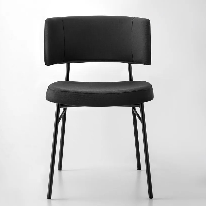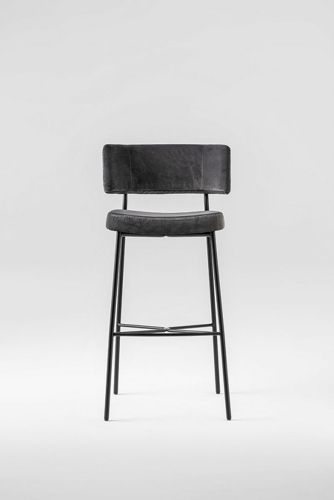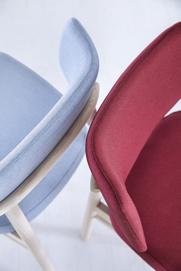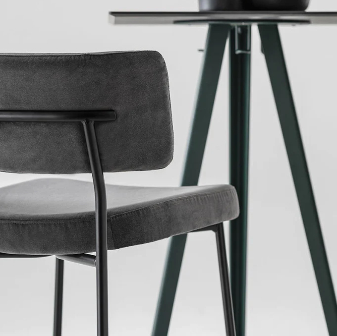 The Marlen project, the new TrabÀ seat designed by EP Studio, is born under the banner of comfort, ergonomics and resistance. A Fifties flavor can be seen in the curvature of the backrest – as generously padded as the seat – and in the 4-legged structure in light and dynamic metal rod, which becomes more prosperous and retro in the solid ash version. Brass or brushed copper enrich the color palette with a vintage taste that you can play with to get the perfect seat, in a residential project as well as for tailor-made contract.