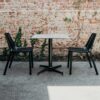 The Norock Parkway self-stabilising table base captures an industrial rawness. Angular and architectural, the exposed componentry and minimalist design illustrates the elements – crafted, zinc-plated steel, exposed fasteners and a dichotomous simplicity.