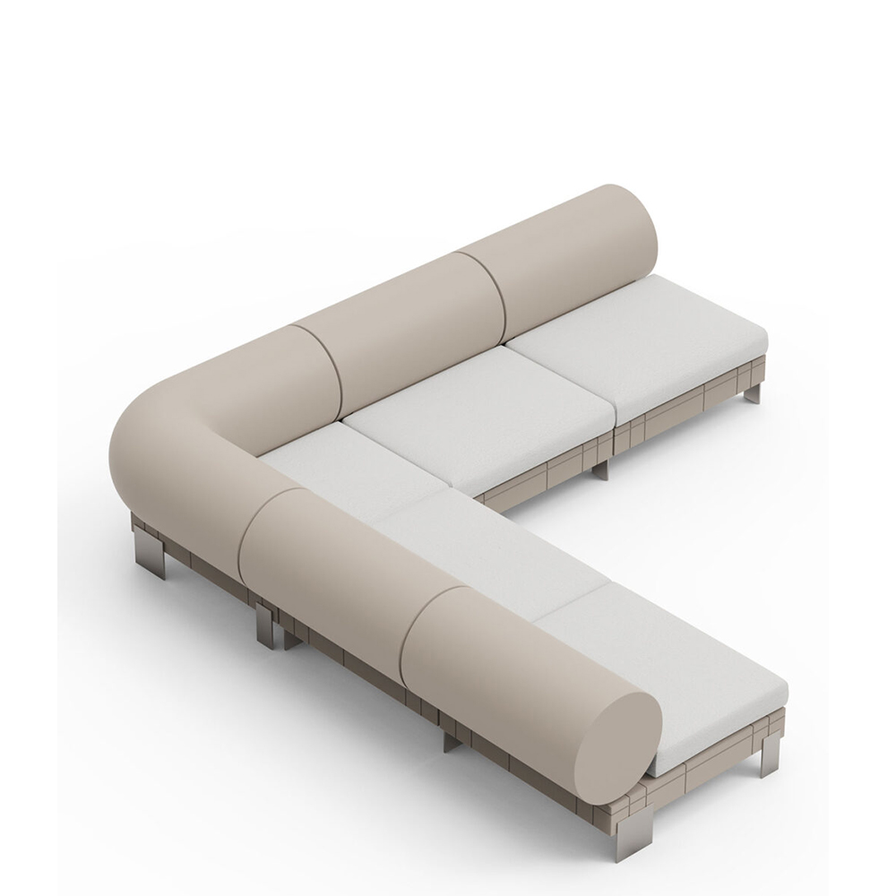 A modular sofa with a pop style, combining a bold, impactful design with unparalleled versatility, making it perfect for stylishly furnishing both indoor and outdoor spaces. Its modular structure allows it to be configured to suit specific space requirements without compromising on style.