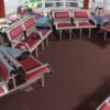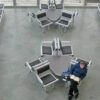 The cluster unit consists of six-seats positioned back-to-back around a triangular table. Clusters can be connected to form semi-circular seating arrangements suitable for families and small groups. The large triangular table provides sufficient space for all occupants to work or relax. Power access is optional.
