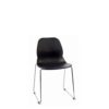 Injection moulded seat shell on chrome steel sledge base steel frame, stackable.