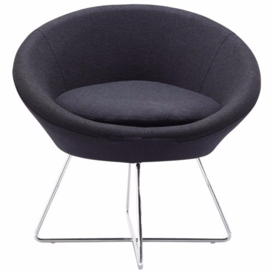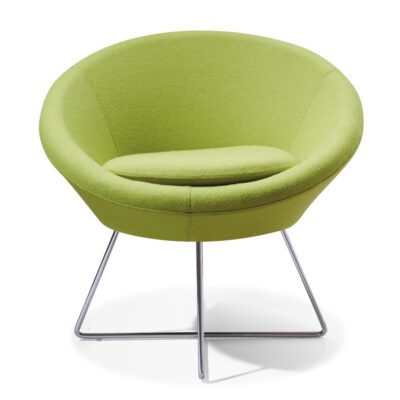 Wide comfortable Fabric upholstered lounge chair with Chrome Cross base