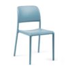 Stackable chair without armrests made of uniformly coloured fibreglass polypropylene resins with UV additives. With non-slip feet and matt finish.