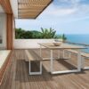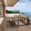 The Stama outdoor table with stylish lines creates a dining atmosphere perfect for any living area. Manufactured with solid wood slats on a die-cast aluminum frame, powder coated charcoal with exquisite craftsmanship.