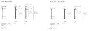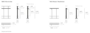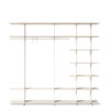 Open wardrobe that simultaneously makes it possible to organise clothes, shoes, bags and other accessories thanks to the way it unites the hanging rod with shelves. Designed for individual use or combined with other elements of the same unit, as well as forming compositions with the Wing shelves. Available in two sizes, 1600 and 800 mm; and two versions, wall-mounted and freestanding.